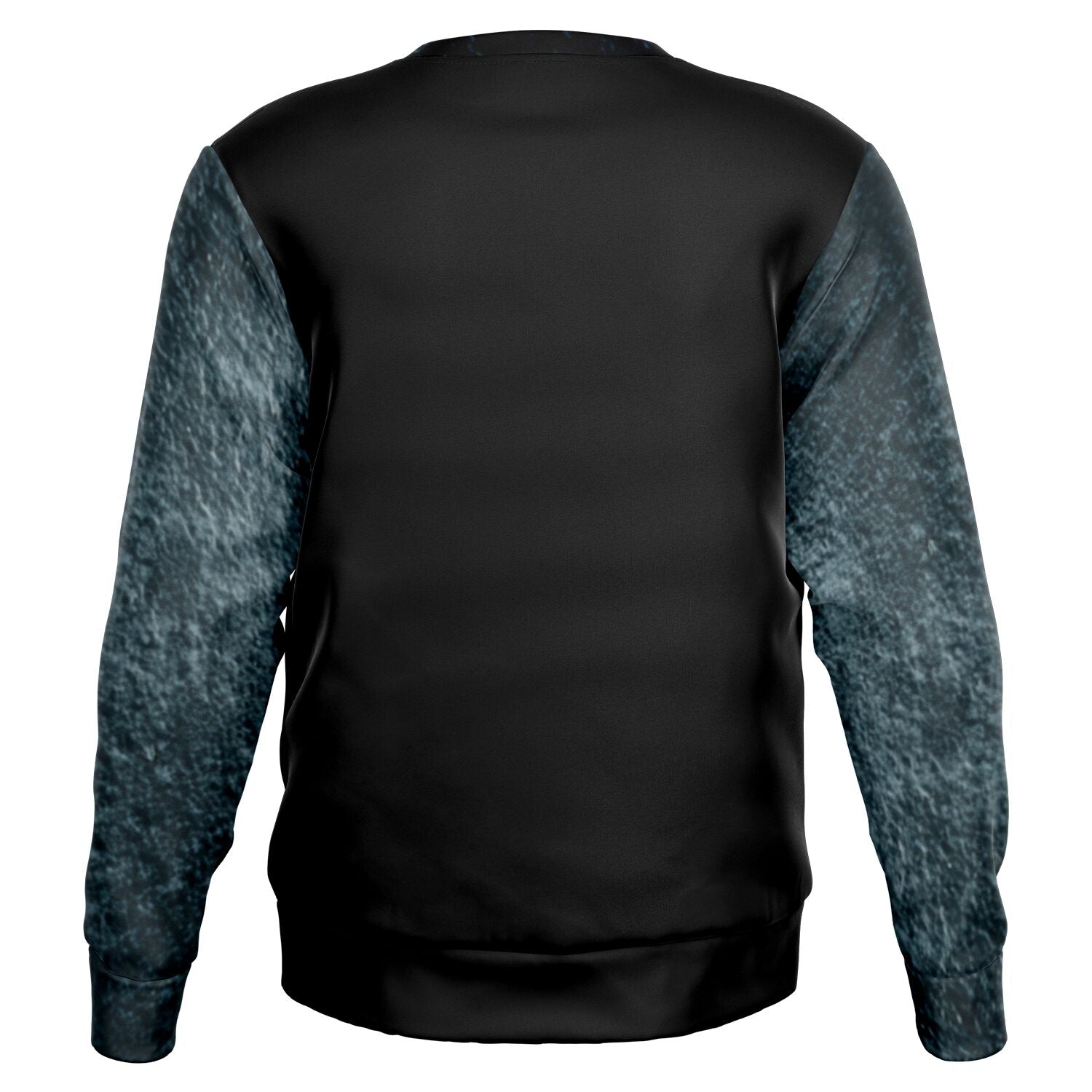 This all-over-print sweatshirt features a striking German Shepherd in a leather jacket and bandana, captured in cinematic detail for a look that’s as confident as man’s best friend.